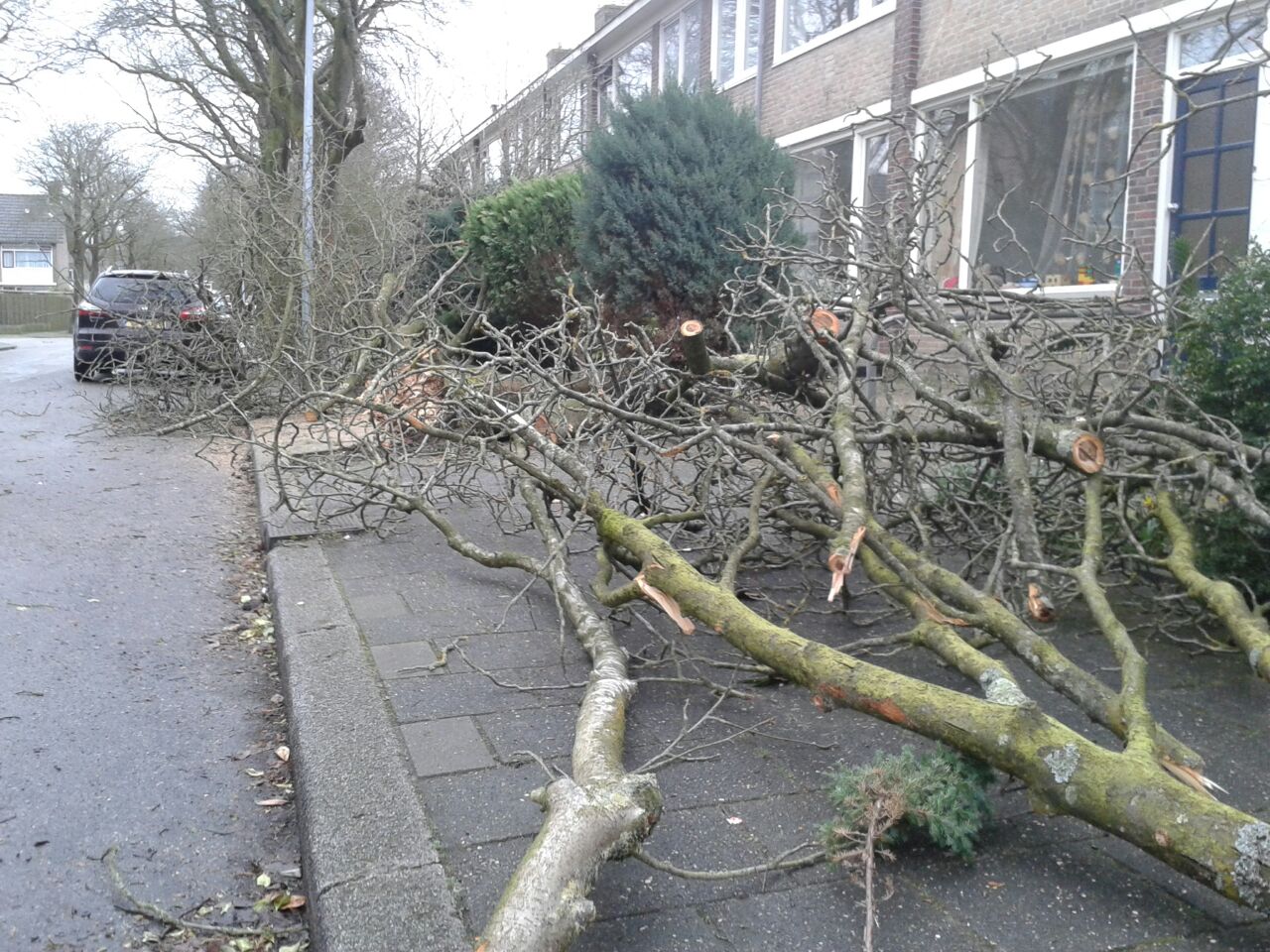 Ook hier Selwerd staat een fijn windje. Deze boom 2 portieken verder is er maar bij gaan liggen.. #storm #Groningen pic.twitter.com/w4CFh1UPm6