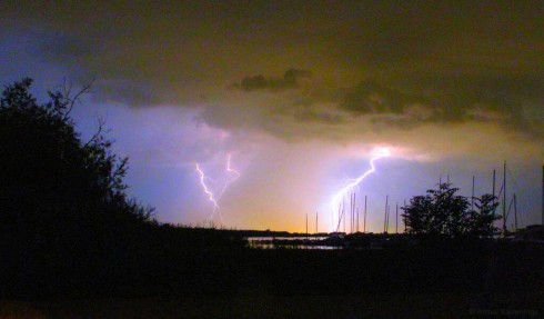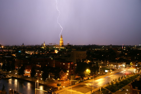 De bui trok rond 22.15 uur over de stad en ging gepaard met veel weerlicht en behoorlijk wat regen. Verschillende Stadjers pakten hun fotocamera om mooie foto’s te maken. Frank van Tol wist een voltreffer naast het Gasunie gebouw op de gevoelige plaat te leggen. Rond 01.00 uur volgde een tweede onweersbui.