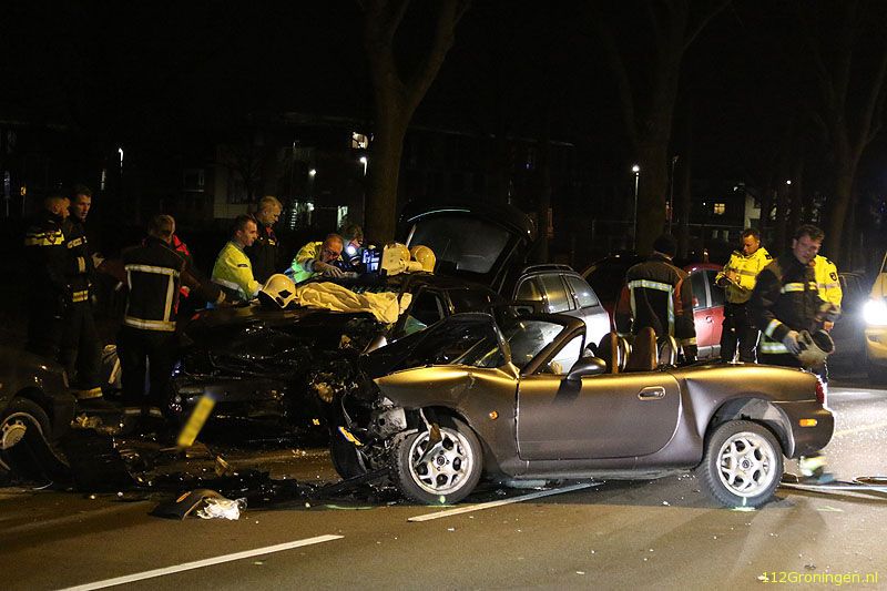 Bij een frontale botsing vrijdagavond op de S.S. Rosensteinlaan tussen de Oosterparkwijk en het UMCG terrein zijn drie mensen gewond geraakt.