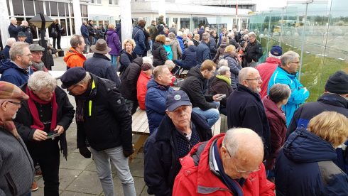 De aankomst van de Boeing 747-400 trok honderden vliegtuigspotters naar Groningen Airport Eelde.