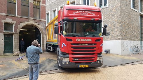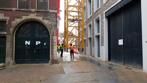 De kraan gaat gebruikt worden voor de bouw van een hotel op de Grote Markt. Om de torenkraan op te bouwen moesten verschillende onderdelen per dieplader aangevoerd worden. Voor de vrachtwagenchauffeur was het nog een hele uitdaging omdat hij vanaf het Martinikerkhof achteruit moest inrijden richting de bouwplaats.