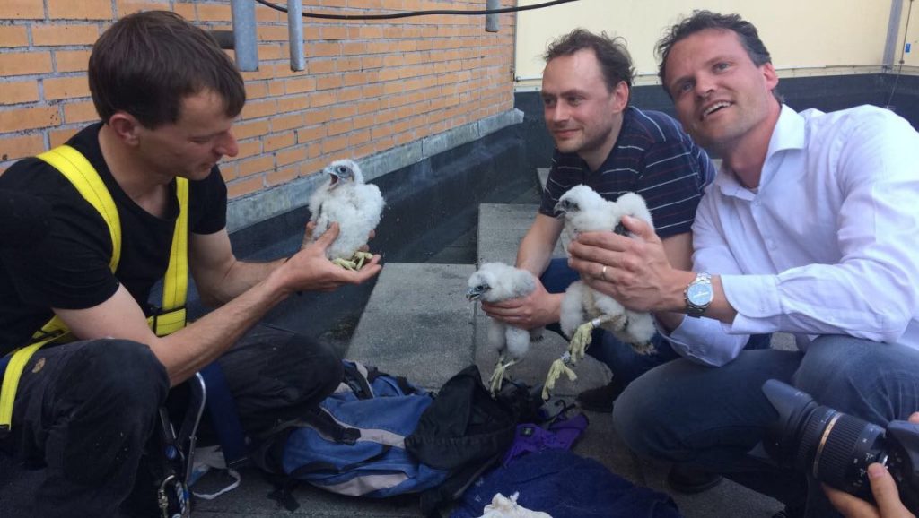 De slechtvalk-familie die sinds een aantal jaren in de nestkast van het Gasunie-kantoor woont is in de nacht van zaterdag op zondag uitgebreid. Eén van de eieren kwam uit.