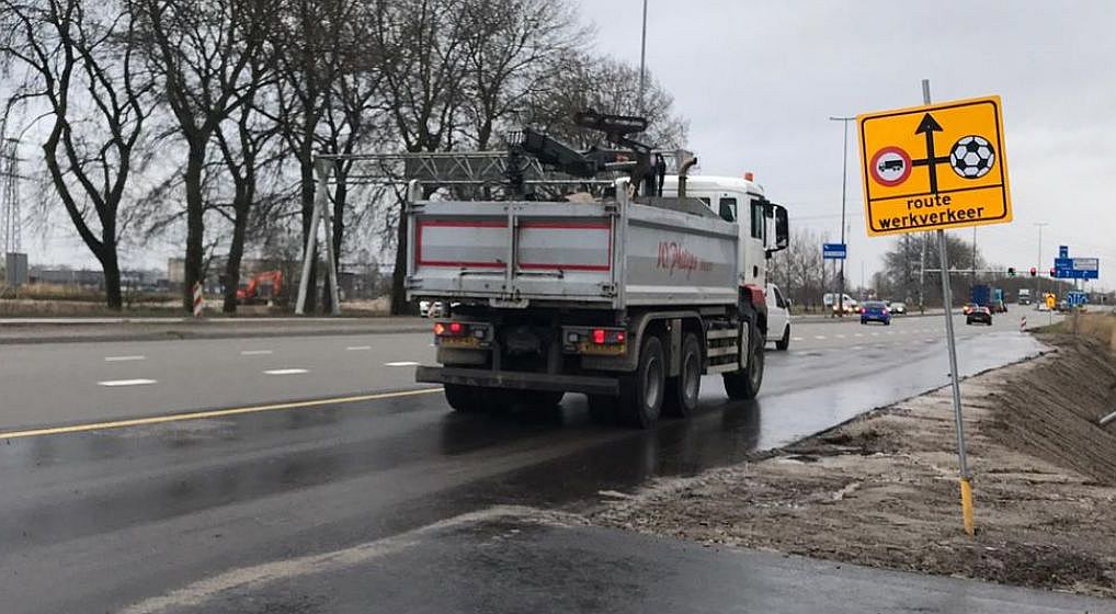 Bouwverkeer van en naar de bouwkuip van de verdiepte ligging van de zuidelijke ringweg, rijdt vanaf maandag via een nieuwe in- en uitvoegstrook bij de Europaweg richting de H.L. Wichersstraat.