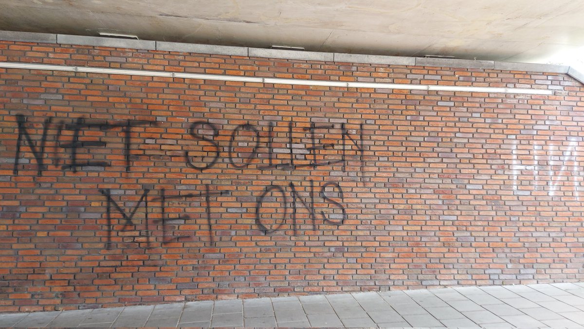 Een buurtbewoner die de gemeente wijst op de graffiti krijgt het antwoord: ‘Ons beleid is dat wij alleen discriminerende of racistische graffiti verwijderen. Daar valt dit helaas niet onder’.
