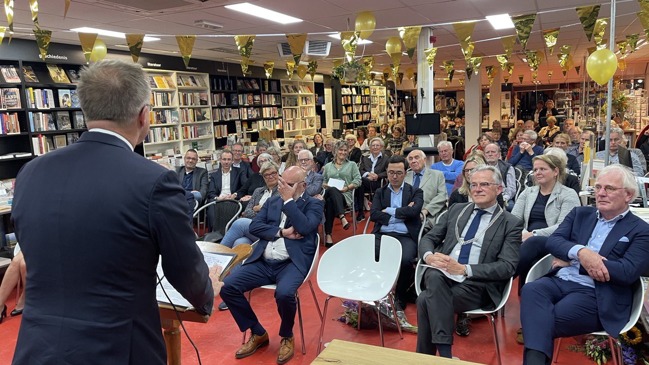 Donderdagavond zal de wijn rijkelijk vloeien, onder de goudkleurige slingers aan het plafond. Maar voor het zover is, is het woord aan commissaris van de Koning René Paas. Hij heeft een verrassing voor boekhandel Boomker in Haren.