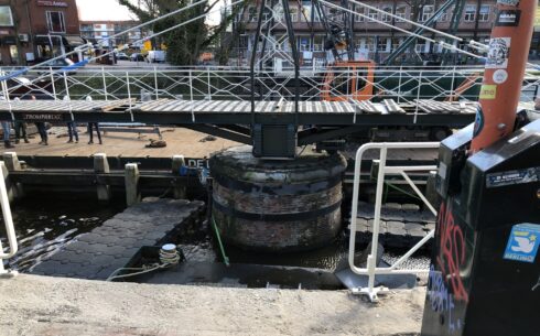 De renovatie duurde langer dan eerst was ingeschat. De brug zou eerst eind december worden teruggeplaatst, maar door een tekort aan materiaal om de brug veilig te kunnen plaatsen is dit met twee maanden uitgesteld. Vanmiddag werd alles weer op zijn plek gehesen, waarbij voorbijganger Herman Grimme een aantal foto’s heeft gemaakt.