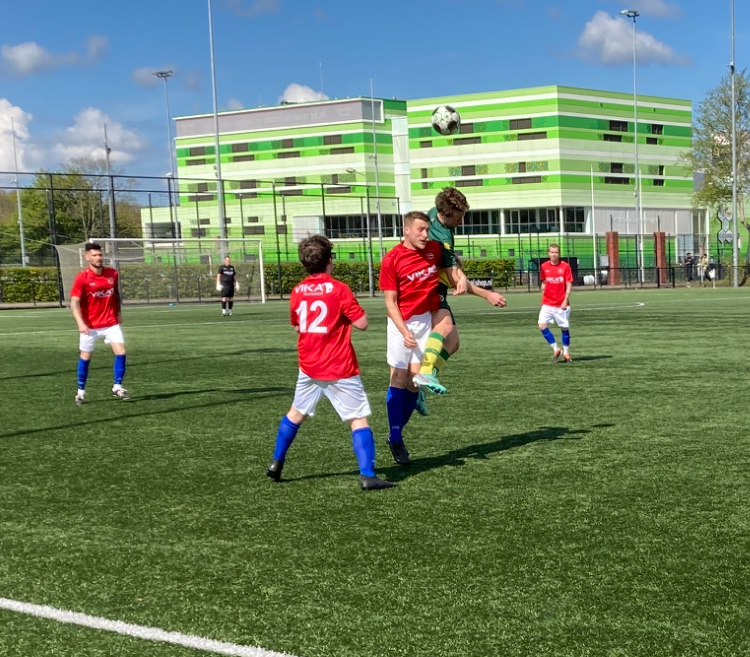 In de 78′ minuut leek het dan toch mis te gaan. De vrijgespeelde Moos Bakker deed alles goed, kapte een tegenstander uit en schoof de bal in de verre hoek voor de 2-2. Maar wederom redde de binnenkant paal Groen Geel.
