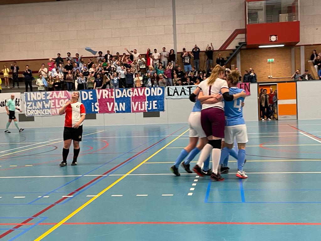 Van de heren van Vijfje was al bekend dat ze nacompetitie voor lijfsbehoud in de eerste divisie A niet meer konden ontlopen. Het gat met concurrent Urk was onoverbrugbaar. De ploeg van coach Sees Bergman won vrijdagavond nog wel met 1-4 van hekkensluiter en degradant Futsal Emmeloord.