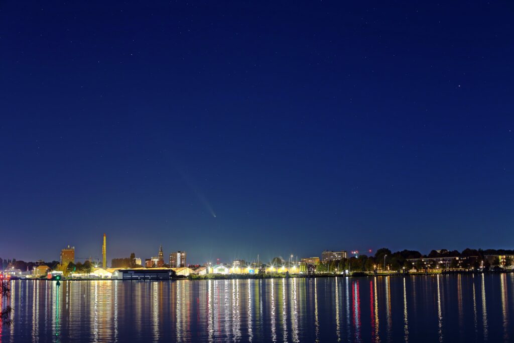 Jeroen Hut was één van de Groningers die het hemellichaam op de foto zette. Hij spotte de komeet rond 20.30 uur vanaf de Woonschepenhaven in Groningen.