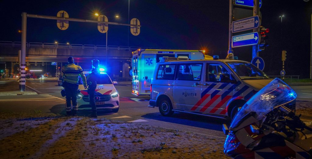 Even verderop ontdekten de agenten de 23-jarige Groninger, die gewond raakte. De Stadjer is met onbekend letsel overgebracht naar een ziekenhuis. De man zal zich op een later moment moeten verantwoorden voor zijn rijgedrag.