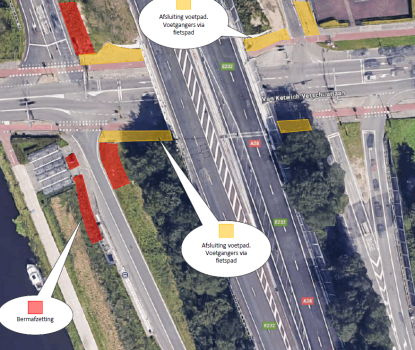 Voetgangers wordt gevraagd om gebruik te maken van het naastgelegen fietspad. Dit betekent dat fietsers en wandelaars dit pad voor vijf dagen moeten delen.