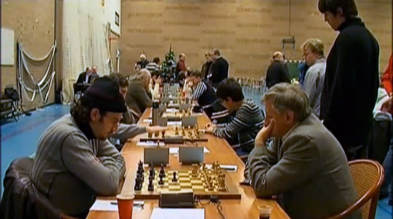 Acht schakers delen de kop na de zesde ronde van het Schaakfestival Groningen 2010. Onder hen ook de Groninger Daan Brandenburg. Hij speelde dinsdag remise tegen de Hongaar Peter Prohaszka.