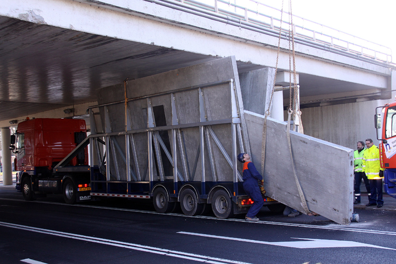 Omdat de betonplaten met een kraan moeten worden verwijderd, heeft de politie één rijstrook afgezet.