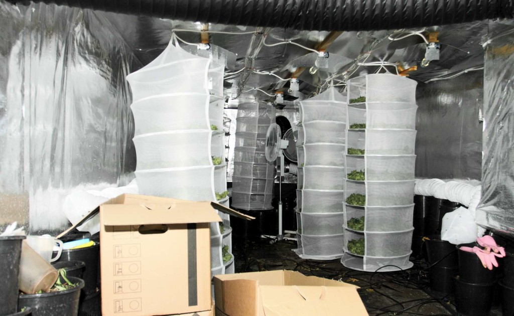 Tijdens het sporenonderzoek in het atelier ontdekte de recherche een afgesloten ruimte, met een daarin een volledige operationele hennepkwekerij. In de ruimte werde 211 hennepplanten en 34 kilo softdrugs gevonden. De planten en de kweekapparatuur werden in beslag genomen.