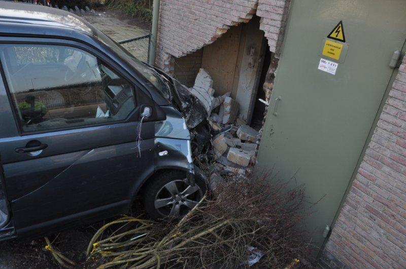 Het ongeluk gebeurde rond half zeven in de ochtend. De man raakte van de weg af, reed door een heg en een hek en kwam tegen het electriciteitshuisje tot stilstand.
