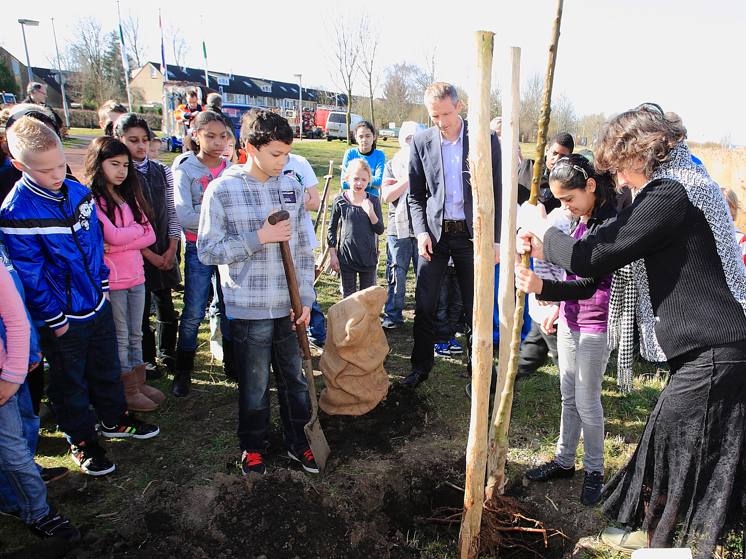 Meer dan 150 duizend kinderen in ruim 400 gemeenten planten op deze fraaie lentedag jonge bomen.