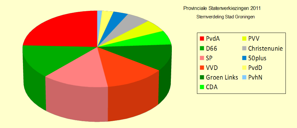 D66 en de PVV zijn woensdag de grootste winnaars geworden in de stad Groningen in vergelijking met de vorige Provinciale Staten verkiezingen in 2007. De PvdA bleef de grootste partij.
