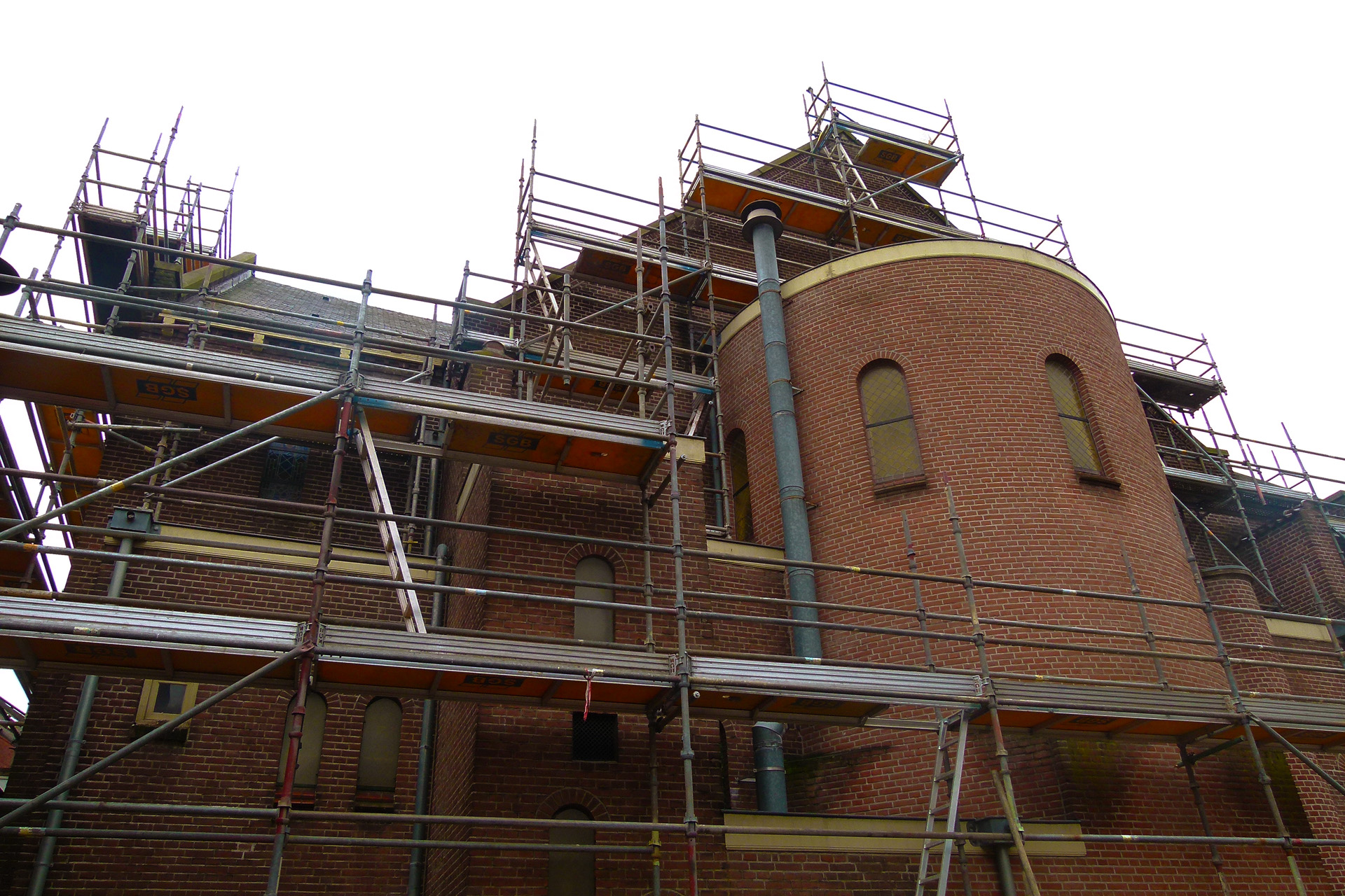 Naar aanleiding van een inspectie bleek dat vooral de buitenkant van het gebouw hersteld moet worden. Roestend ijzerwerk, vervallen metsel- en voegwerk worden vernieuwd. Eind deze week wordt de voorgevel aangepakt. Het ronde roosvenster wordt gerestaureerd en kunststofglas wordt vervangen door echt glas.