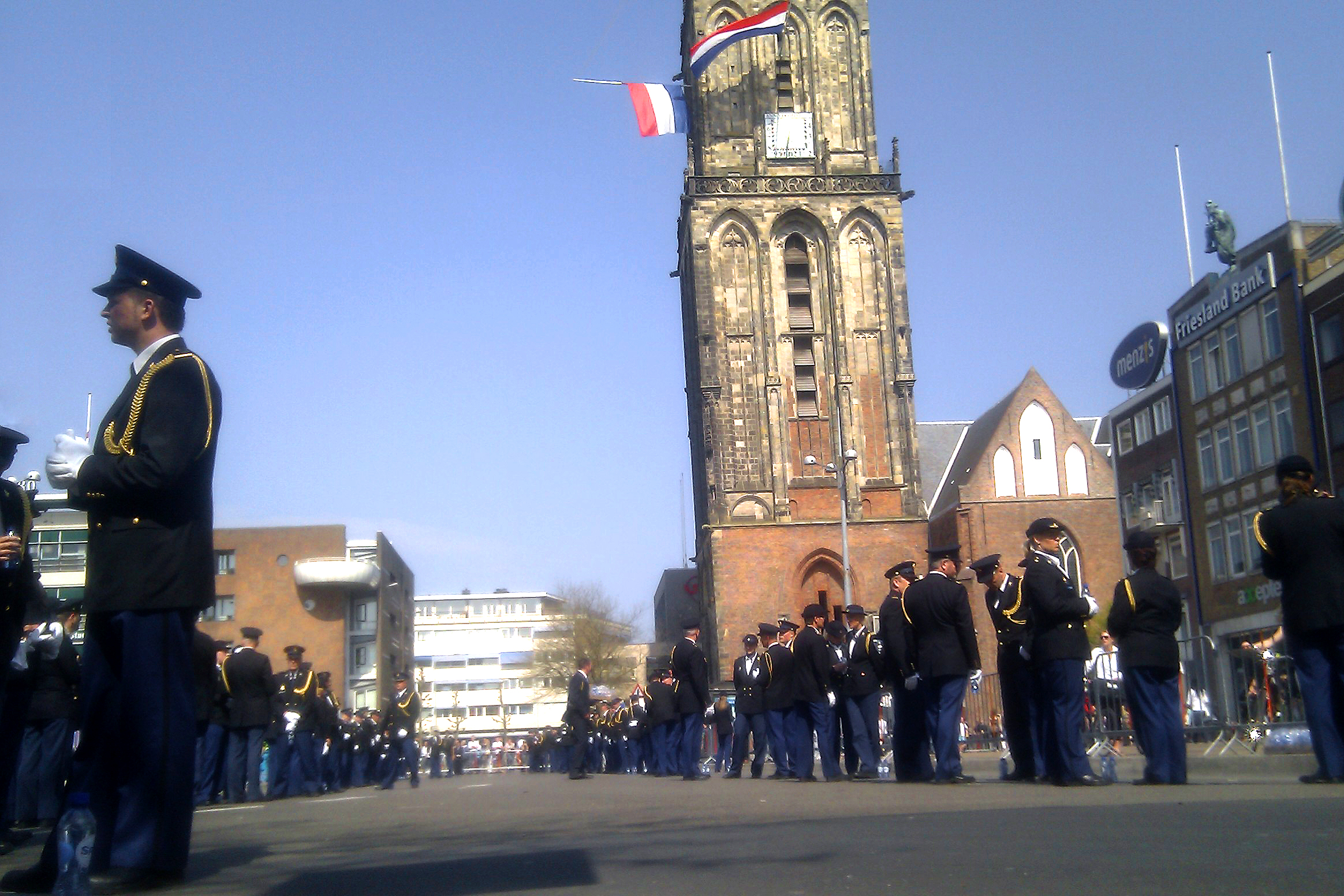 De omgeving van de Grote Markt is woensdagmiddag slecht bereikbaar in verband met de herdenkingsdienst in de Martinikerk voor de omgekomen hoofdagent Dick Haveman.