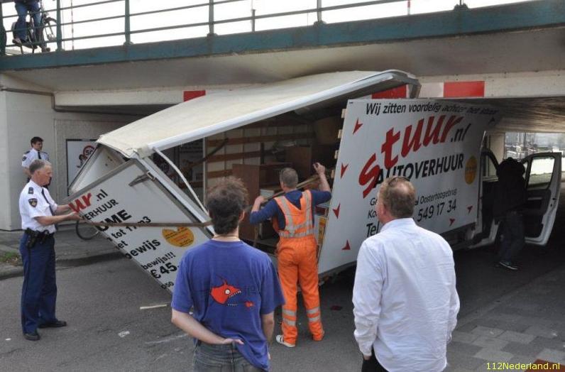 De man was aan het verhuizen en had een busje gehuurd om de spullen snel en eenvoudig te vervoeren. Daarbij vergiste hij zich in de hoogte van het viaduct, met als gevolg dat er grote schade aan het vehikel ontstond.