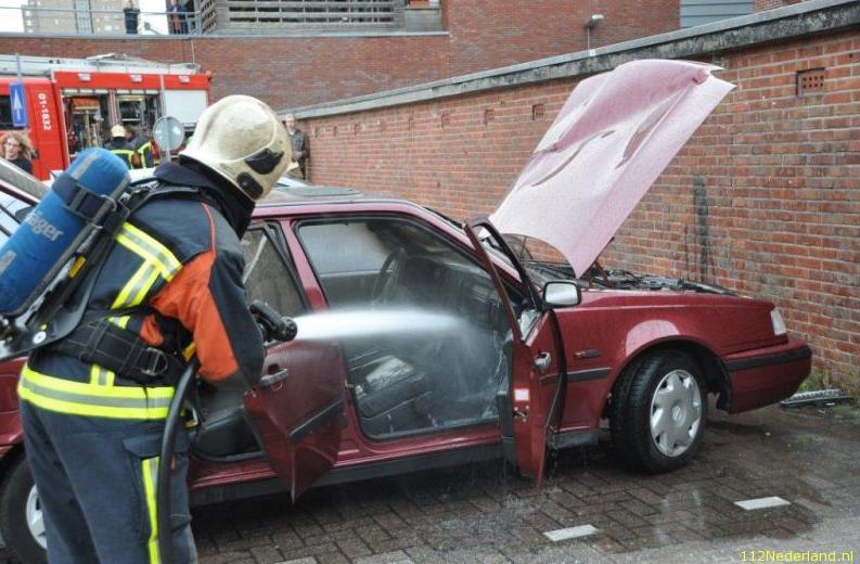 Een korte maar felle brand heeft donderdagavond een auto op het Linnaeusplein gedeeltelijk verwoest.