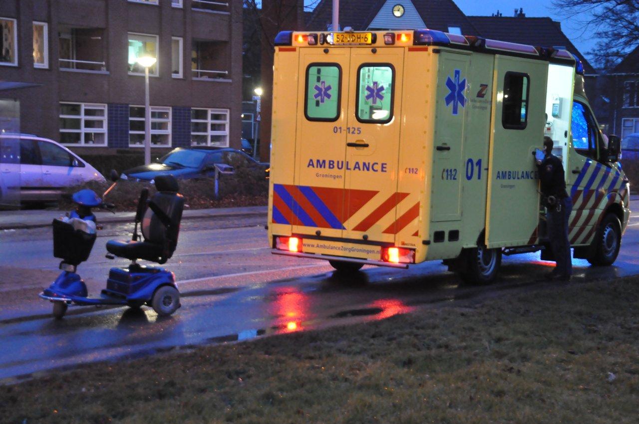 Een 78-jarige man uit Groningen is zondagmiddag gewond geraakt bij een verkeersongeval. Getuigen zeggen dat de bejaarde man met hoge snelheid op zijn scootmobiel over de stoep reed.