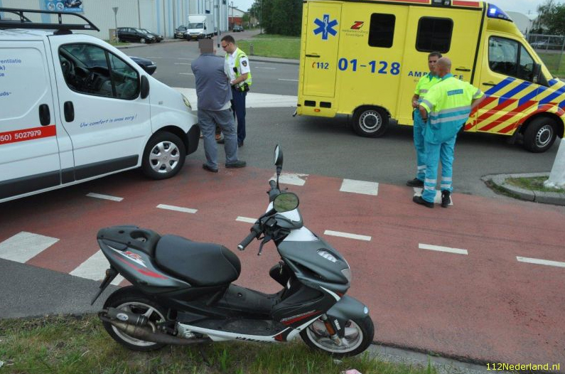 De bestuurder van een bestelbus had bij het afslaan de scooterbestuurder over het hoofd gezien. De jongen werd van zijn scooter geslingerd. Uiteindelijk bleek hij op wat schaafplekken na, niets te mankeren.