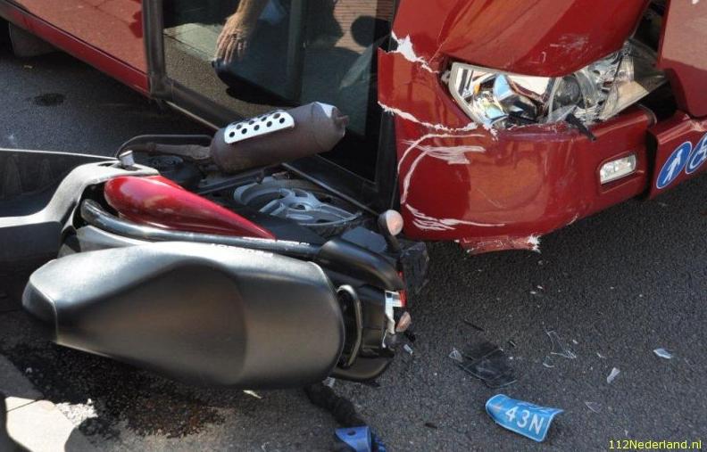 De bestuurder van een stadsbus heeft de vrouw vermoedelijk over het hoofd gezien waardoor een aanrijding niet meer te voorkomen was. Door van haar scooter te springen kon de bestuurster erger voorkomen. Ze is ter plaatse behandeld aan verwondingen aan haar voeten.