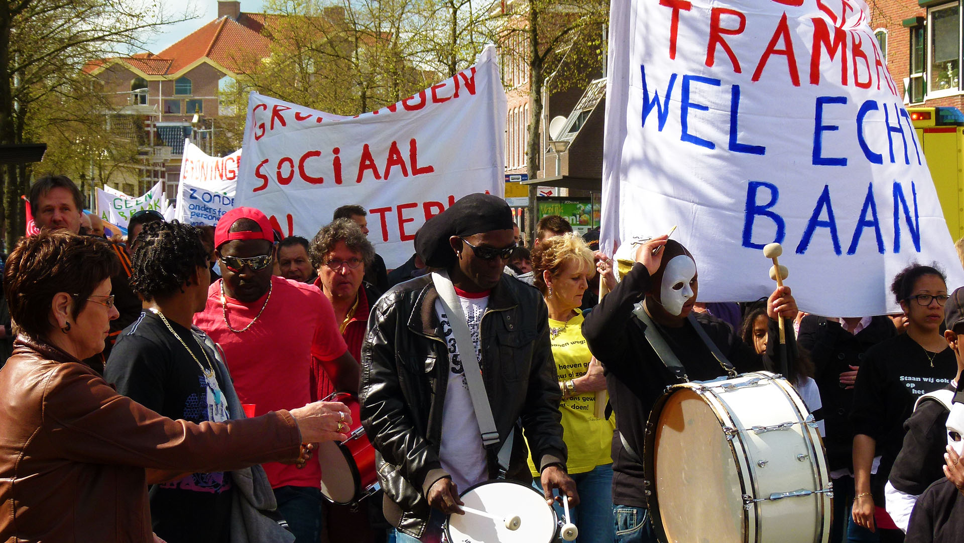 De Grote Markt was maandag weer het toneel voor de maandelijkse protestactie van de groepering Groningen Sociaal en leefbaar. Deze groepering vecht tegen de bezuinigingen in de gesubsidieerde banenmarkt. Vandaag presenteerden de demonstranten een lijst met 15000 handtekeningen.