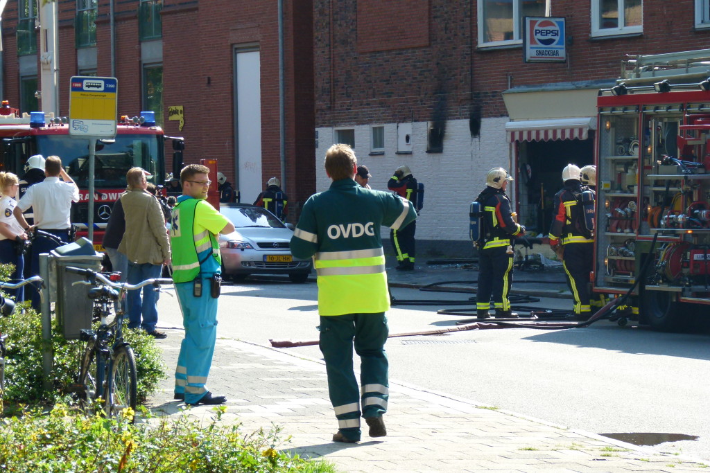 Een korte maar felle brand heeft maandagochtend voor veel schade gezorgd in een cafetaria aan de Dirk Huizingastraat in de Oosterparkwijk. De brandweer spreekt over een mega-schade.
