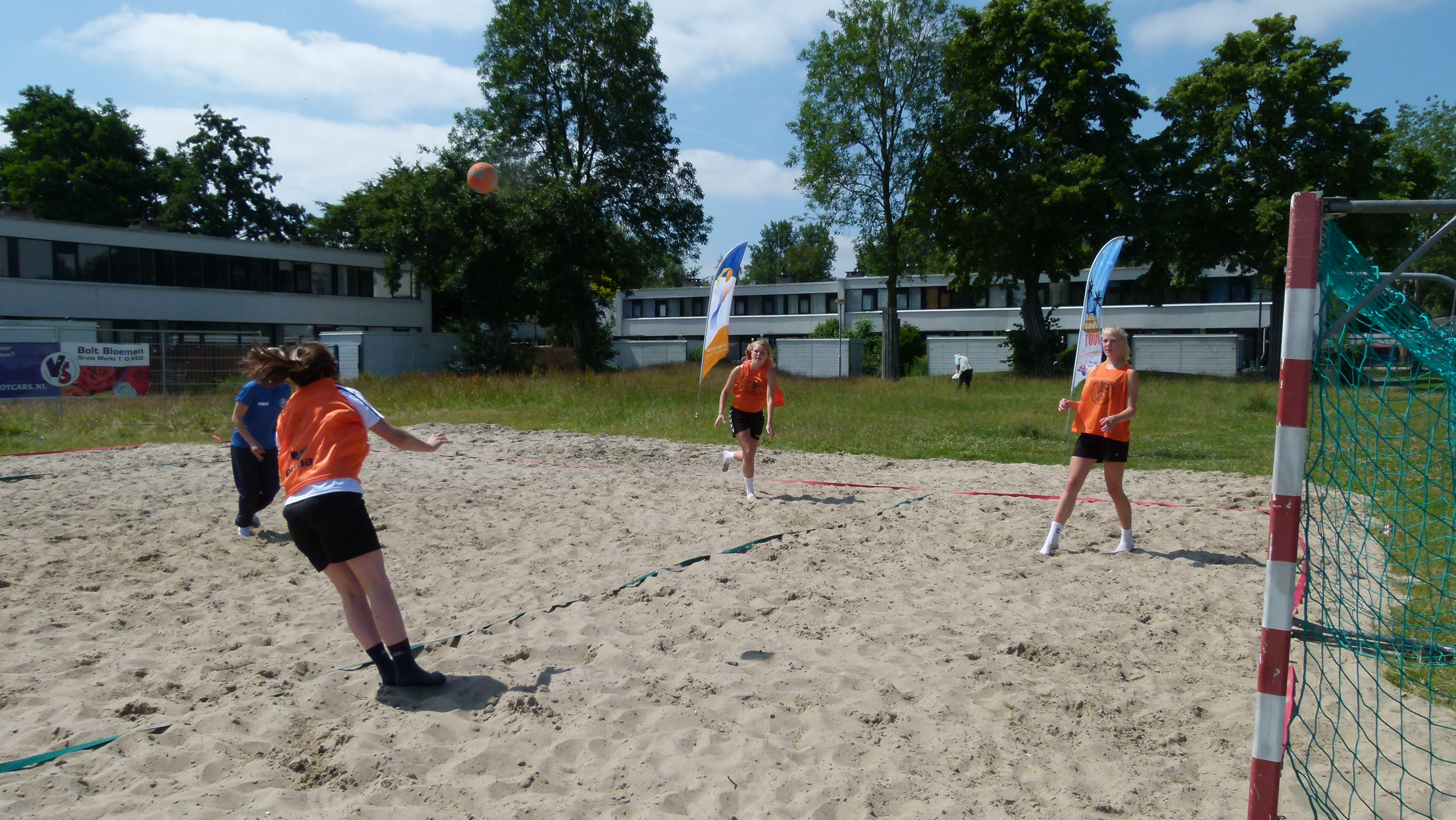 De beachspelweek begon afgelopen zaterdag met een onderling beachhandbaltoernooi. Dat toernooi wordt deze week voortgezet, alleen zijn dan de kinderen van verschillende groepen van de lagere scholen uit de wijk te gast. Ondanks dat veel leerlingen nog nooit eerder met handbal in aanraking zijn geweest, is de kwaliteit van het spel volgens de organisatie bijzonder hoog te noemen.