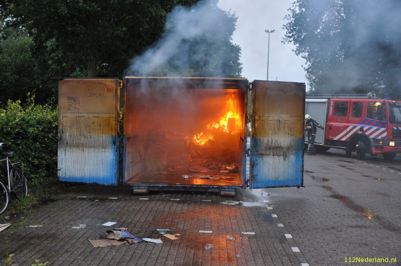 Een container is zaterdagavond grotendeels uitgebrand aan de Oosterweg in Haren. Bij de brand zijn geen mensen gewond geraakt.