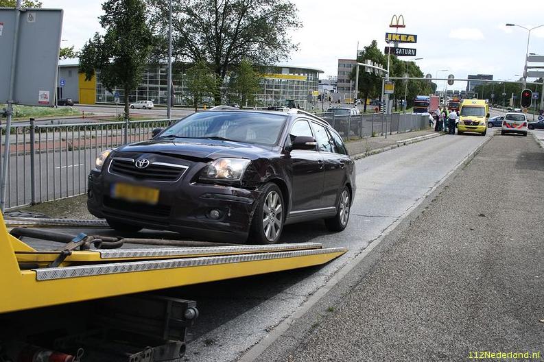 De personenauto raakte zwaar beschadigd en moest door een bergingsbedrijf worden weggesleept. De ambulance kon ondanks de schade zijn weg gewoon vervolgen. De politie doet onderzoek naar de oorzaak van de aanrijding.
