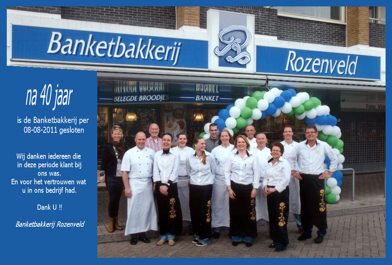 Banketbakkerij Rozenveld aan het Overwinningsplein heeft maandag de deuren voor het laatst gesloten. Daarmee is er na veertig jaar een einde gekomen aan een begrip in de stad.