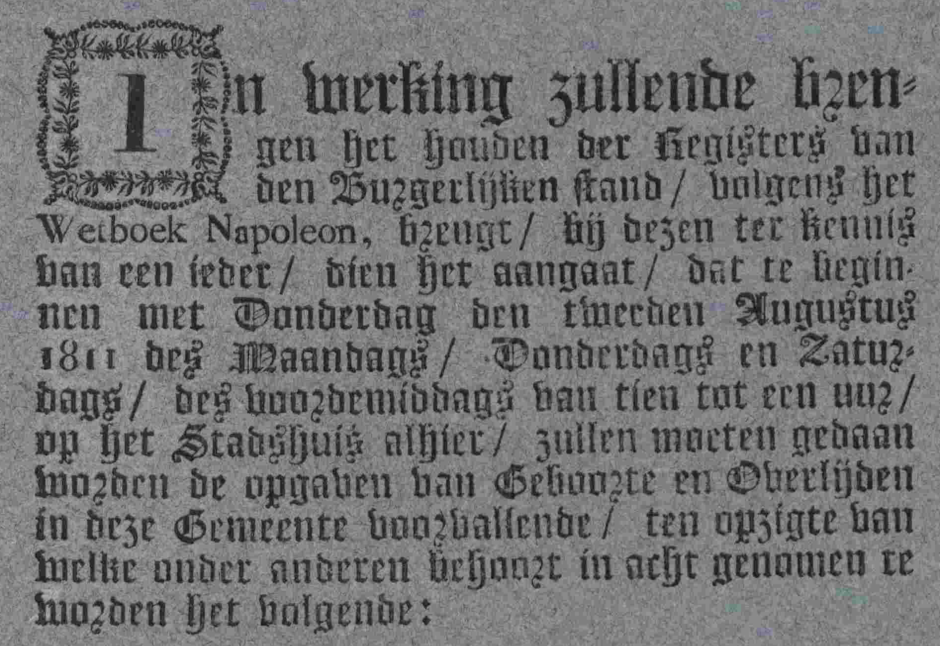 De geboorte, het huwelijk en het overlijden. Alles wordt tegenwoordig keurig bijgehouden door de Burgerlijke Stand. Maandag is het precies tweehonderd jaar geleden dat dit gemeentelijke instituut werd ingesteld.