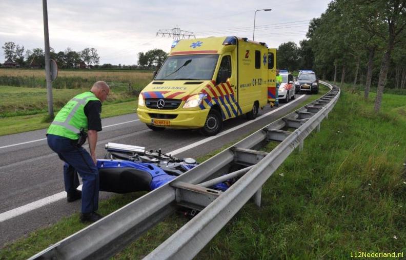 De man kwam door nog onduidelijke reden in de berm terecht waarna hij de macht over het stuur verloor. Hij schoof met motor en al onder de vangrail. Bij het ongeluk liep hij een gebroken arm op.
