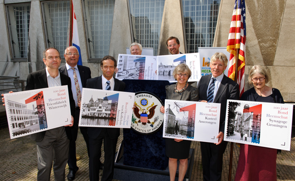 De Bond Heemschut is een vereniging die zich inzet voor de bescherming van cultuurmonumenten. Op het postzegelvel staat behalve de Groningse synagoge ook de Sint Servaasbrug in Maastricht, kasteel Amerongen, de Wilhelmina Tricotagefabriek in Winterswijk en het Noord-Zuid Hollands Koffiehuis in Amsterdam.