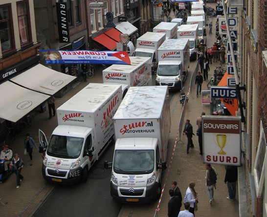 De Naberpassage wordt afgebroken om plaats te maken voor het Groninger Forum. Het gaat volgens het stadsbestuur om 700 wagens, een stuk minder dan de winkeliers eerder hadden vernomen. Volgens de winkeliers zou het gaan om 5000 vrachtwagens.