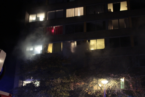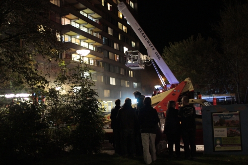 De melding van de brand kwam om 23.15 uur binnen. “We zijn uitgerukt met een bluswagen en een hoogwerker”, vertelt woordvoerder Harry Annen van de Hulpverleningsdienst Groningen. “Al snel werd duidelijk dat het om een uitslaande brand in een studentenkamer op de tweede verdieping ging. Omdat het om een gebouw gaat dat in zijn geheel uit elf verdiepingen bestaat en het daarnaast onbekend was of er zich nog bewoners in de kamer bevonden, hebben we opgeschaald naar ‘middelbrand’, waardoor er ook een tweede bluswagen ter plaatse kwam”.
