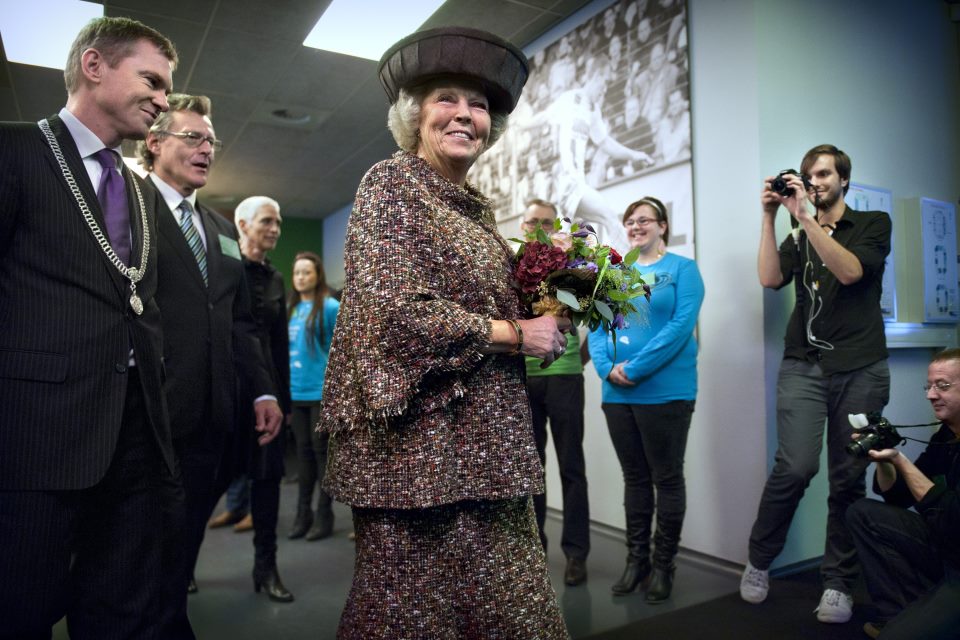 Koningin Beatrix bracht donderdag een bezoek aan de Euroborg. Ze bezocht Groningen om een symposium bij te wonen over de rechten van het kind in gevangenschap.
