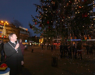 De traditionele kerstboom is woensdagochtend weer voor het stadhuis op de Grote Markt geplaatst.