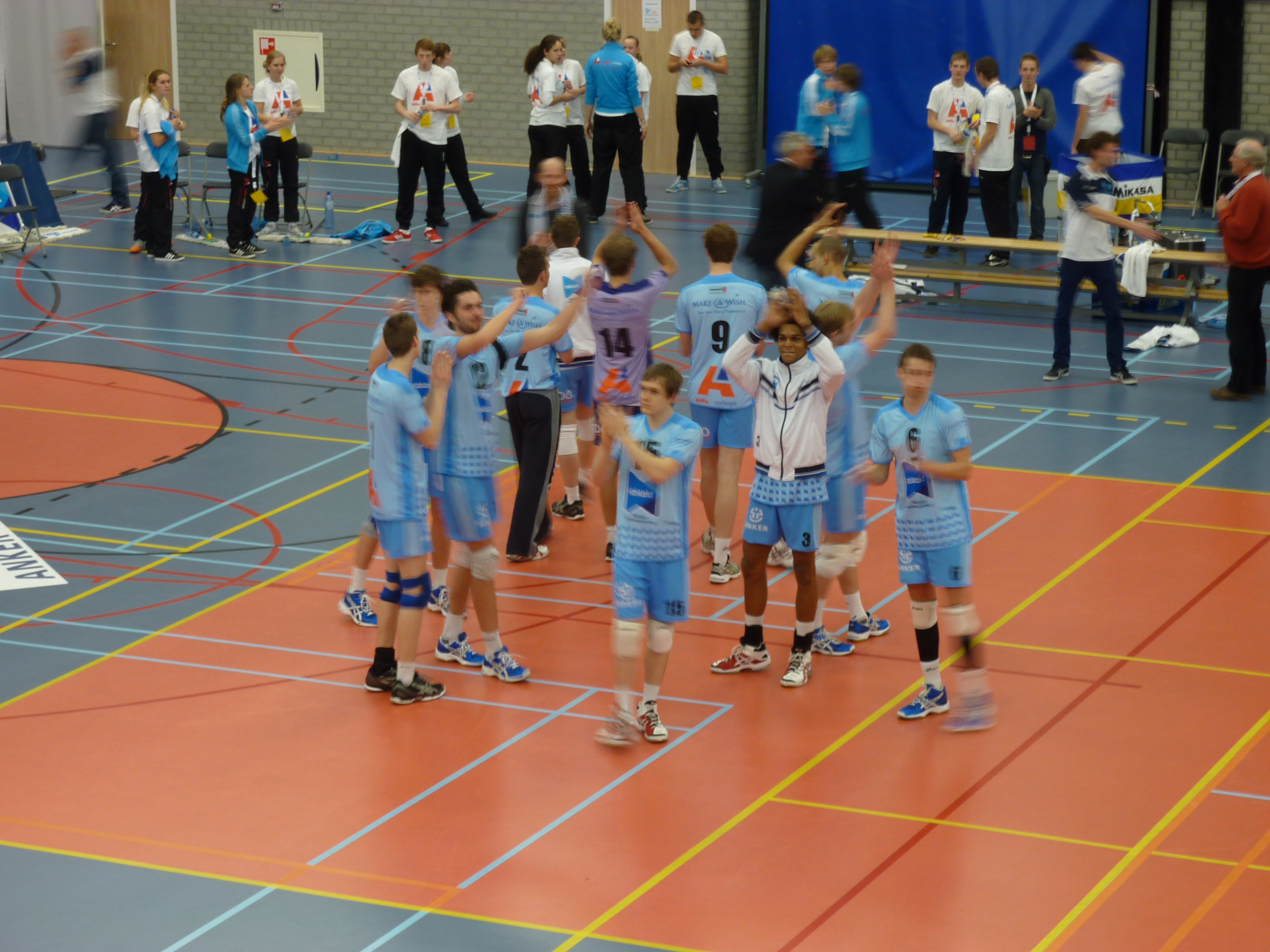 Lycurgus had het in de bijna volle topsporthal een stuk moeilijker met de Zwitsers dan vorige week in de uitwedstrijd, die Lycurgus met 1-3 won. De eerste set was zeer spannend, en ging uiteindelijk met 22-25 naar de gasten. De tweede set was een gemakkelijke prooi voor de thuisploeg: 25-15. De derde set gaf weer een heel ander beeld. Hierin waren de Zwitsers weer sterker, en ze wonnen deze set eenvoudig met 17-25. De vierde set werd met hangen en wurgen weer door Lycurgus gewonnen, met 25-23, en ook de vijfde set was zeer spannend, en werd ook gewonnen door Lycurgus met 16-14.
