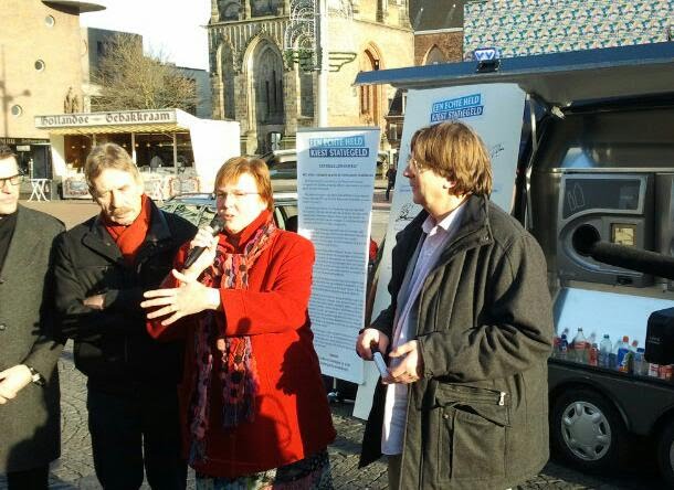 Samen met collega’s uit Bedum en Zuidhorn heeft milieuwethouder Jannie Visscher het statiegeldmanifest ondertekend.