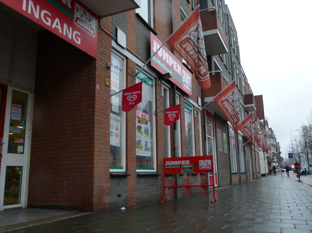 Maandagmiddag heeft er een gewapende overval plaatsgevonden op een filiaal van dierenspeciaalzaak Jumper aan de Hereweg. De politie is op zoek naar de overvaller.