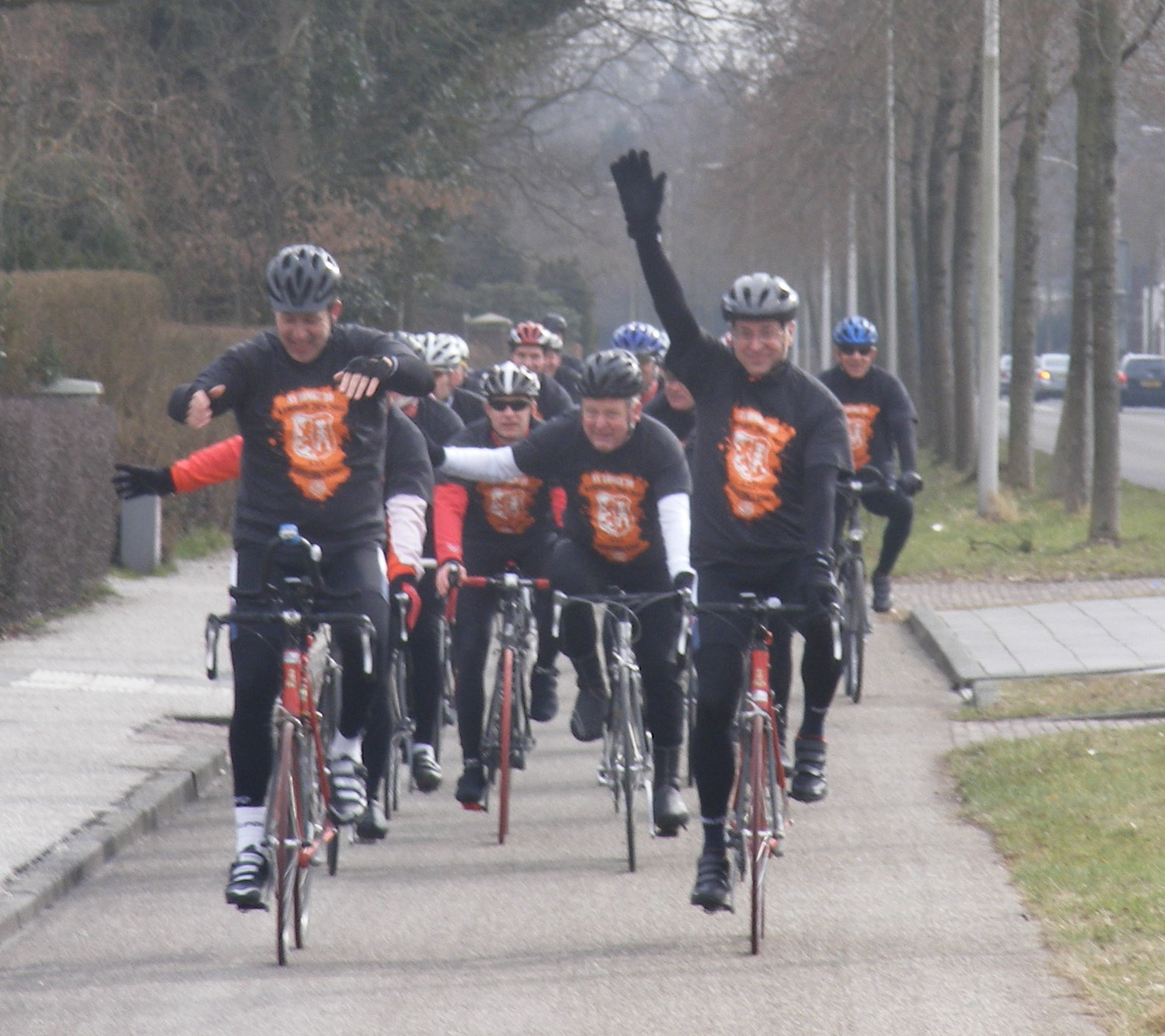 24 aanhangers van Longa ’30 reden vanwege een weddenschap op de fiets van Lichtenvoorde naar Groningen, een afstand van 160 kilometer. Daaronder de voorzitter van Longa’30 en de burgemeester van Oost Gelre.