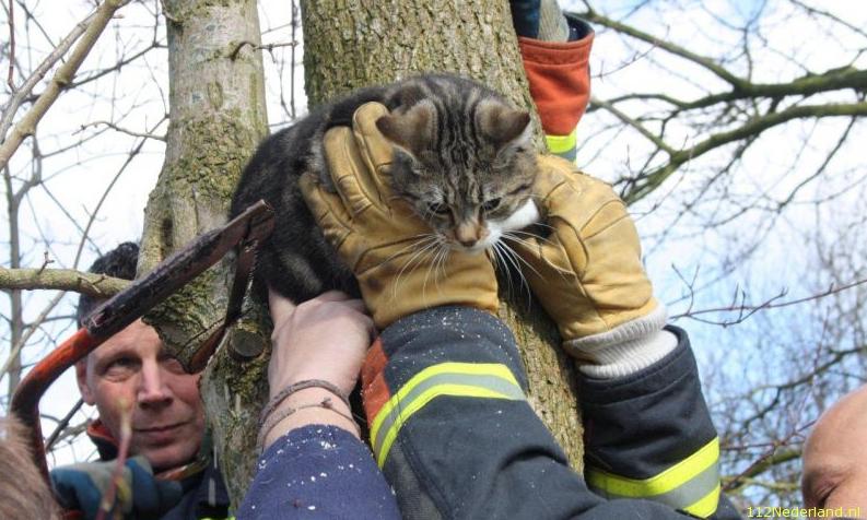 Buurtbewoners die het zagen gebeurden alarmeerden de dierenambulance. Het beestje zat echter zo vast tussen twee grote takken dat het de medewerkers niet lukte om de kat te bevrijden. Hierop werd de hulp van de Groninger brandweer ingeroepen die met een hoogwerker ter plaatse kwam.
