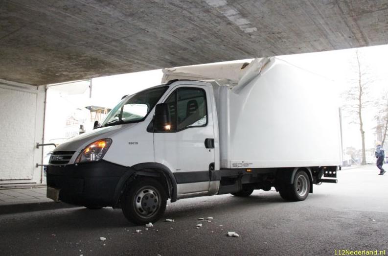 Het ongeluk gebeurde rond 16.30 uur. De bestuurder had zich vergist in de hoogte van zijn bedrijfsauto waardoor een botsing het gevolg was. De voorzijde van de laadruimte werd hierbij in elkaar gedrukt. De politie kwam ter plaatse om de schade op te nemen en om het verkeer te regelen. Nadat het busje los was getrokken kon deze op eigen kracht naar een schadeherstelbedrijf rijden.