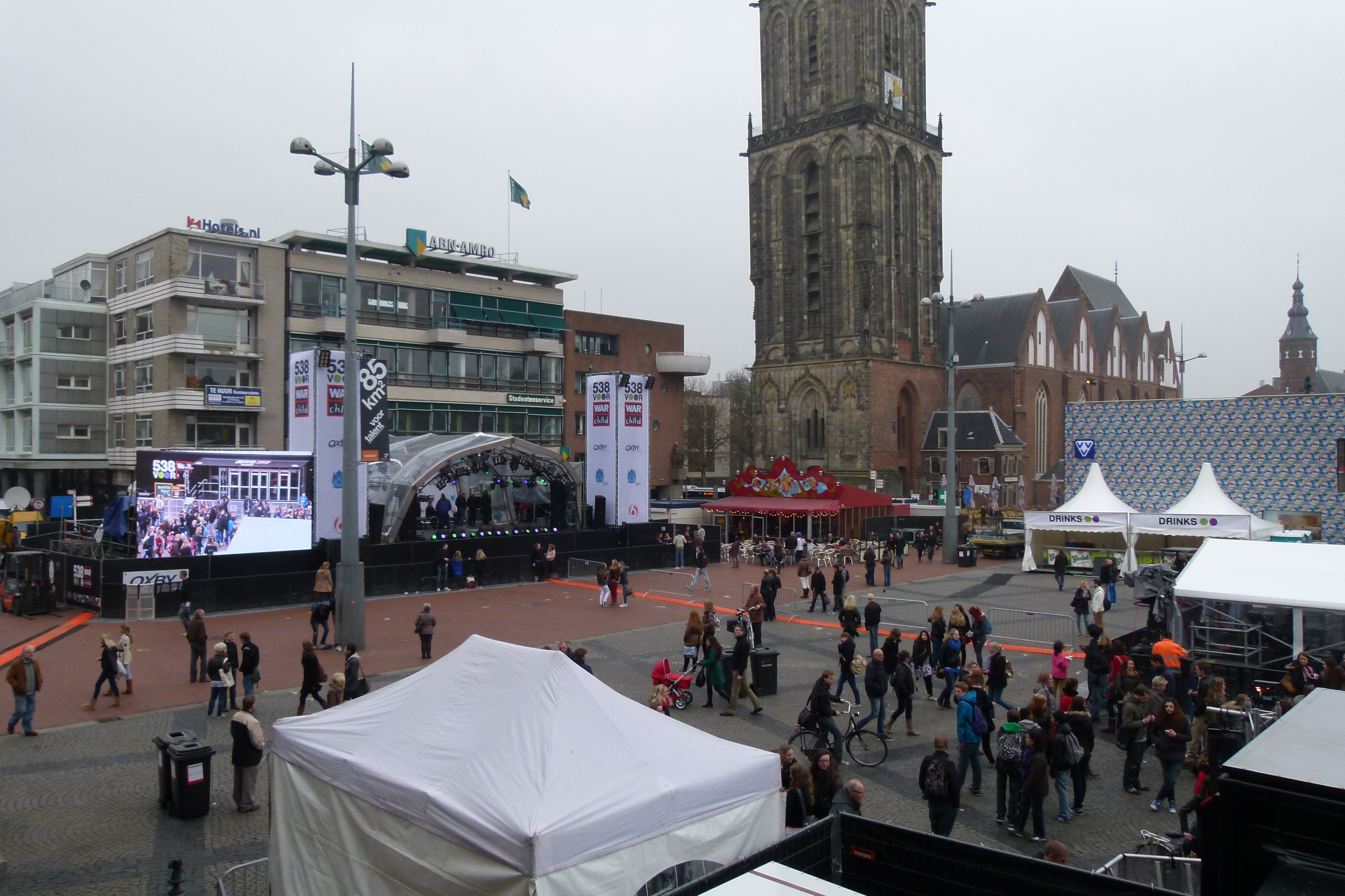 De DJ’s van de radiozender bleven tot 06.00 uur in het schoolgebouw. Daarna werd de uitzending overgenomen vanuit de studio op de Grote Markt. De actie wordt vrijdagavond afgesloten met live-optredens van onder andere Racoon, Sander van Doorn, Marco Borsato en Van Velzen en nog vele anderen. Mike Slot maakte vrijdagmiddag de onderstaande foto’s op de Grote Markt. Heb je zelf ook foto’s gemaakt van de actie op de Grote Markt en wil je die terugzien op deze pagina? Stuur ze naar de redactie van OOG Radio & TV!
