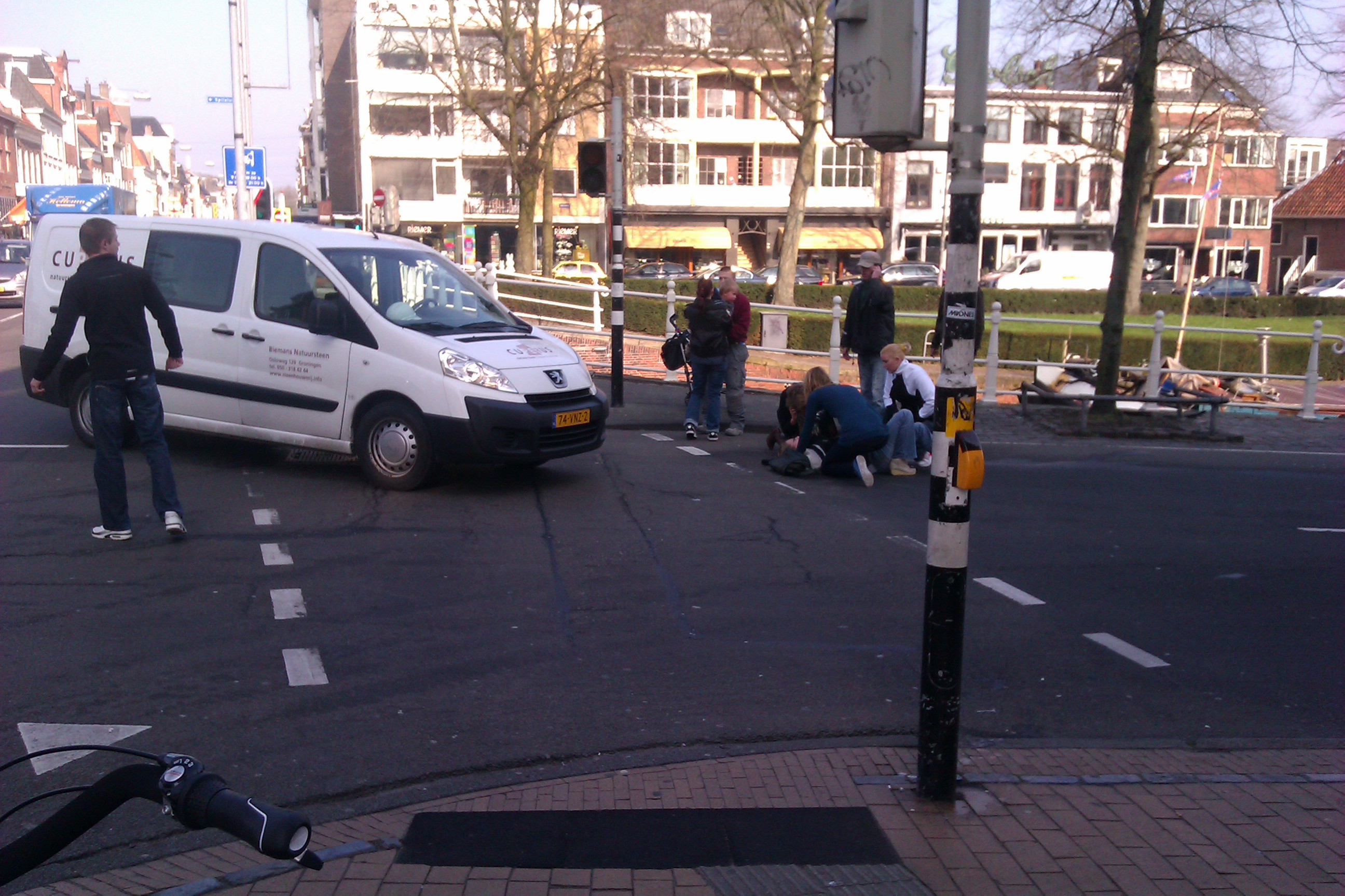 Op de hoek van de Oude Ebbingestraat en de Turfsingel is vrijdagmorgen een voetgangster aangereden.