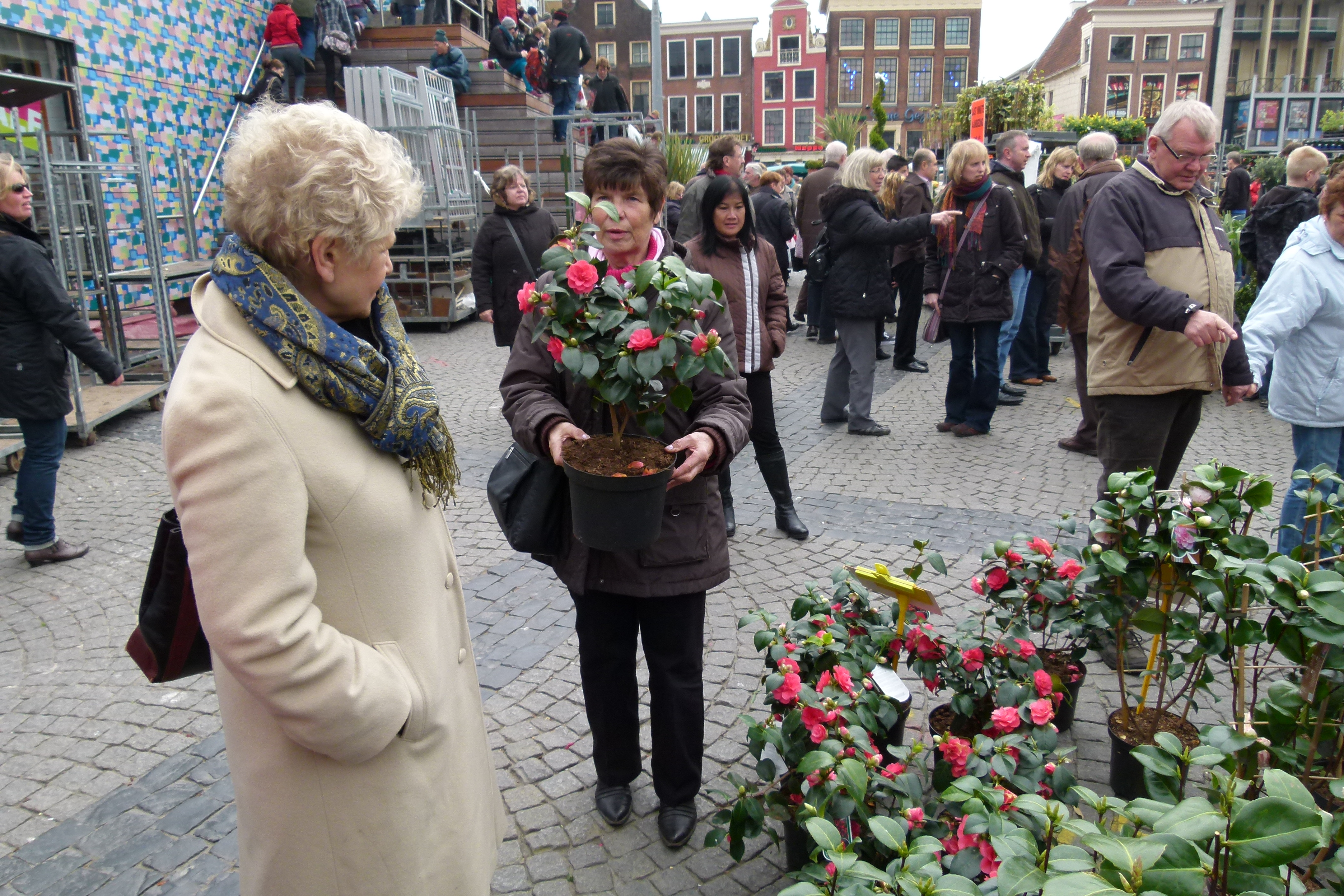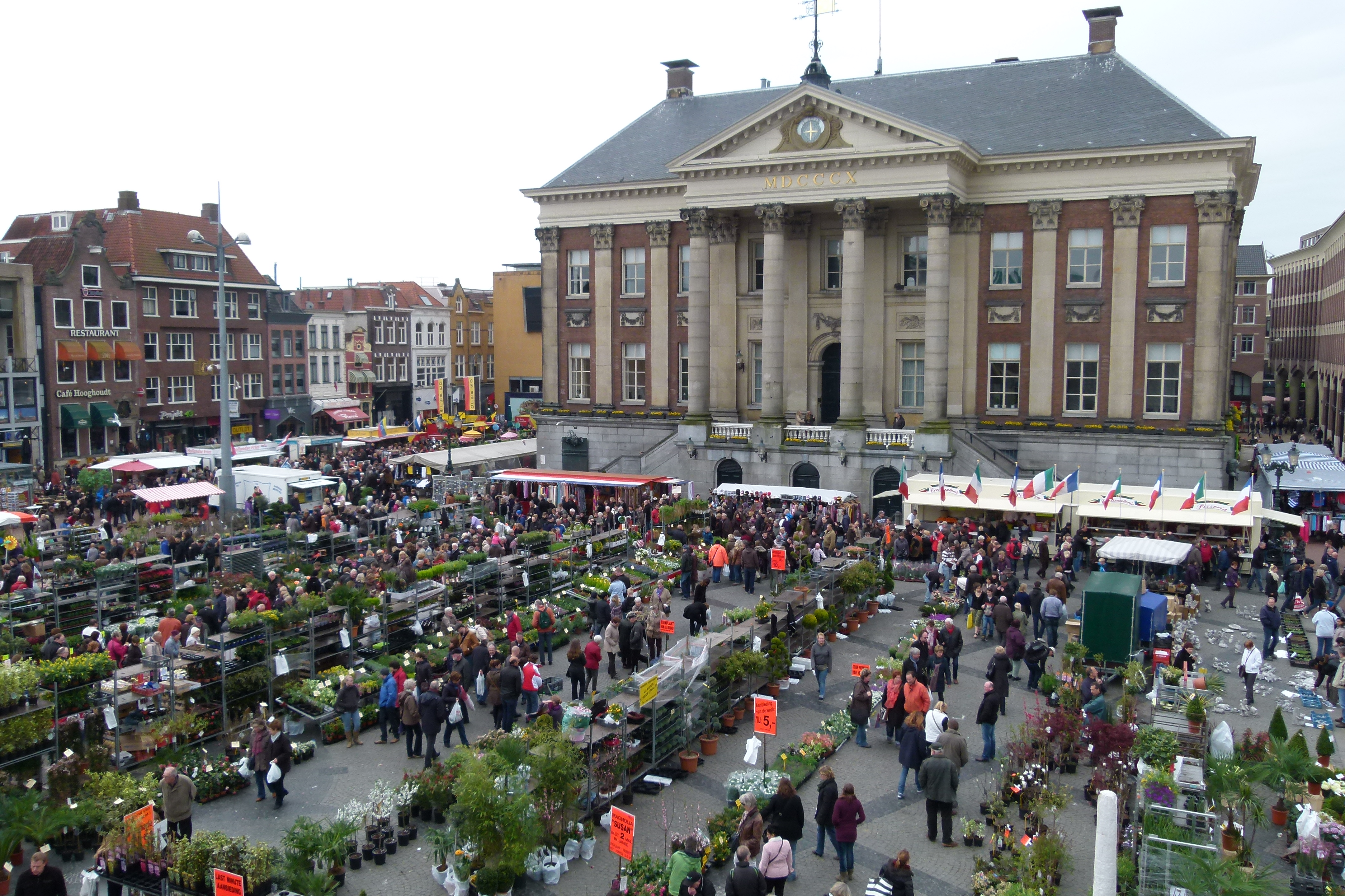 Honderden marktkooplui hadden in alle vroegte hun plekjes ingenomen op de Grote Markt, de Vismarkt en het Waagplein.